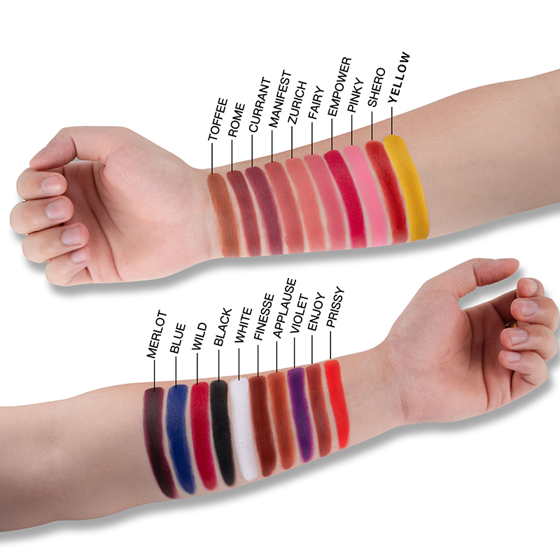2) Polyhydroxystearic acid: regulating the stability of the texture, improve the color rendering of toner, and also has certain lip protection effects. - 3. 20 trendy colors can be mixed as desired;